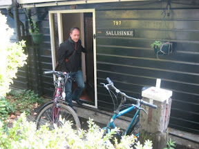 On saturday night we managed to cram about 200 OSMers into a Chinese restaurant. After a big meal Henk Hoff led the poetry proceedings. Spectacular! We similarly swamped a big pub after that. The sophisticated continental habit of having a waiter charging a bill at the end... didn't work too well. later our crowd-sourced pub decision making process didn't work too well either. After a long walk, we just settled on somewhere random. In fact I was on a bike. We had bicycles included with our houseboat. Definitely the way to get around Amsterdam, but at this point in the evening I was a little wobbly.