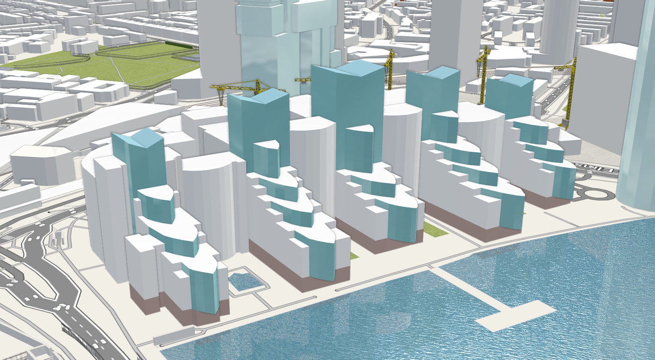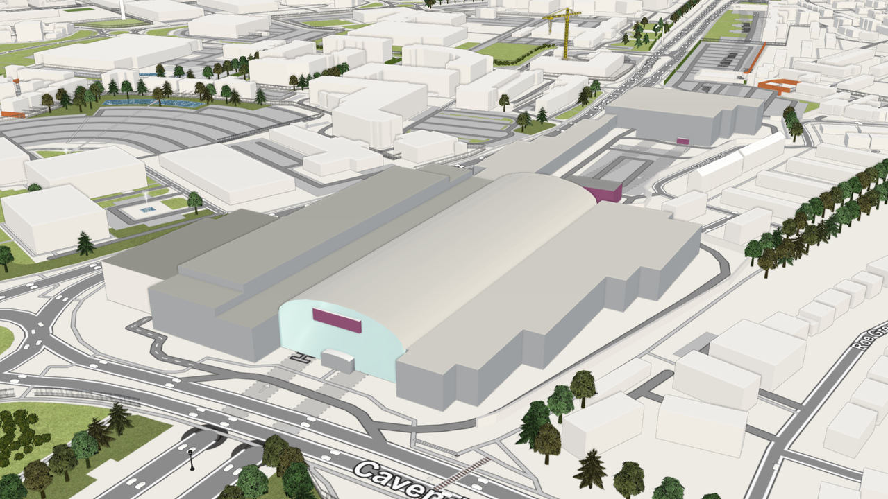 ABBA Arena, a purpose-built, temporary music venue designed for ABBA’s hugely successful virtual concert residency ABBA Voyage. I’m very pleased with the way I managed to represent the ABBA logo folding over the side of the arena.