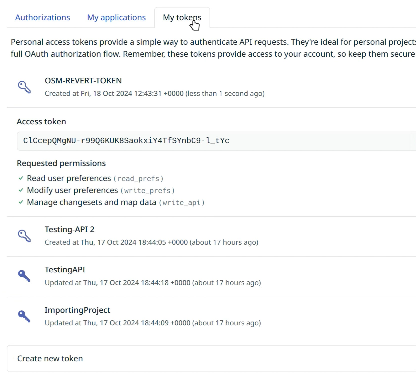 Personal Access Tokens (PATs) provide a simple way of authenticating with the API for personal projects, not requiring full OAuth authorization flow. This can include small scripts, personal monitoring tools, and others. They provide minimal barriers to OpenStreetMap API programming, with an easy path to upgrade to classic OAuth2 auth flow if needed. It’s a popular solution in the world of public APIs.