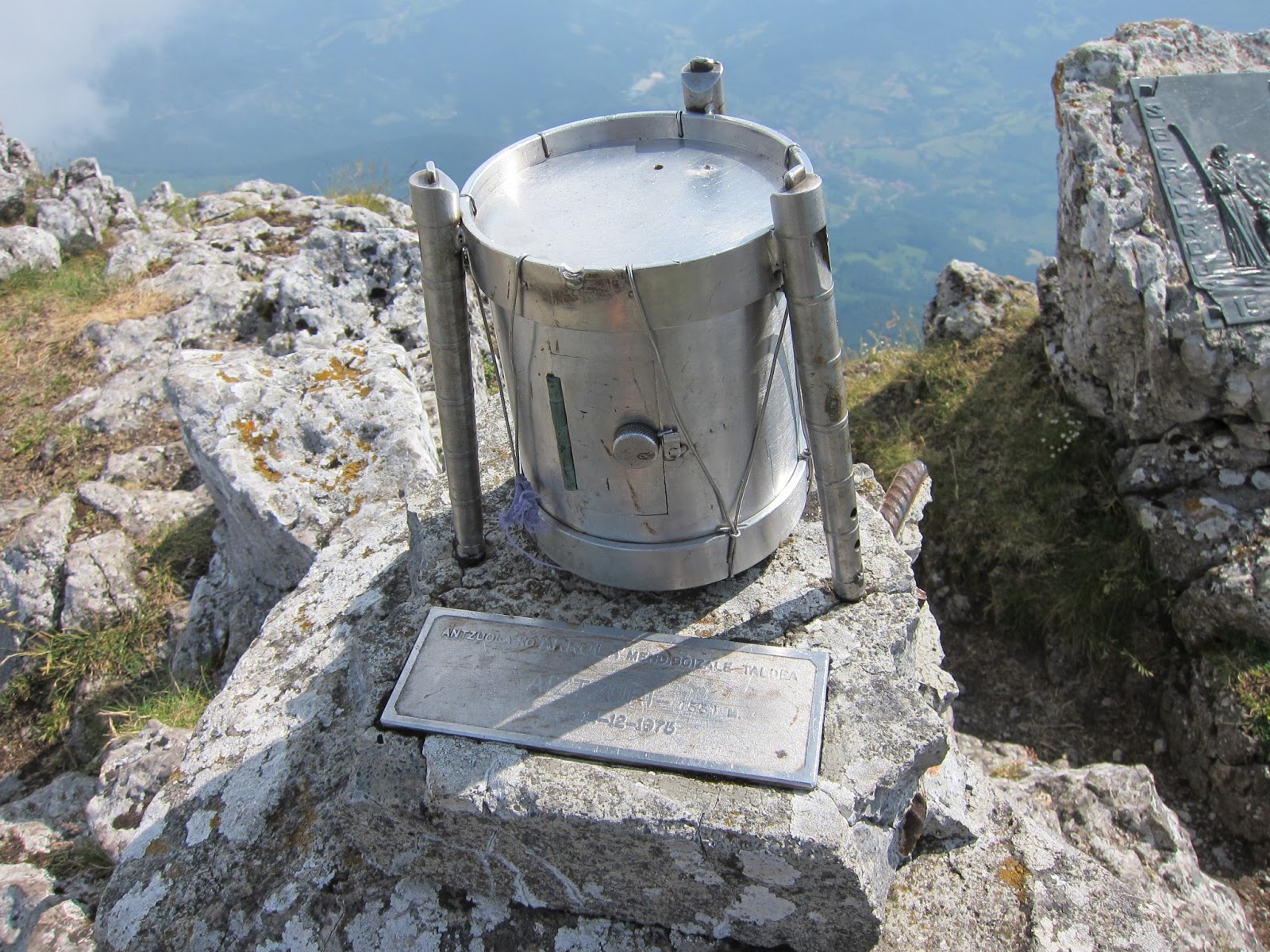 Most mountaineer's mailboxes have a plaque with the name of the summit, elevation and the year when it was placed.